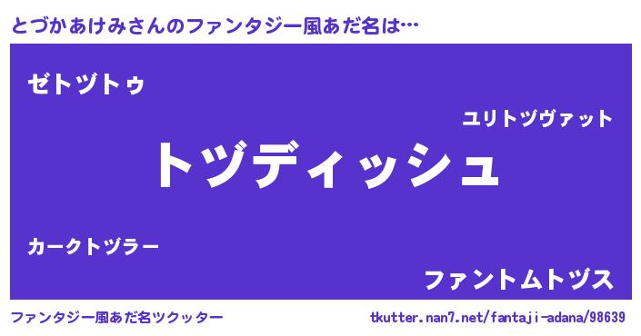 | 意味不明あだ名 | 『永久保存とづかあけみ』 |