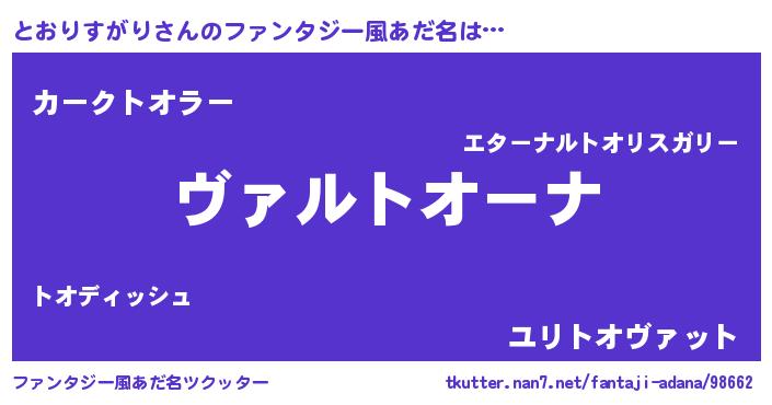 | ヒーロー風カッコイイあだ名 | 『仮面トオダー』『ネオトオリスガリ』 |