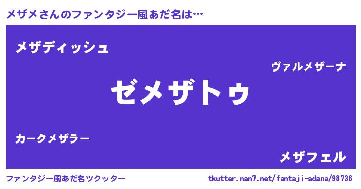 | ポケモン風あだ名 | 『メザセウス』『ゼニメザ』 |