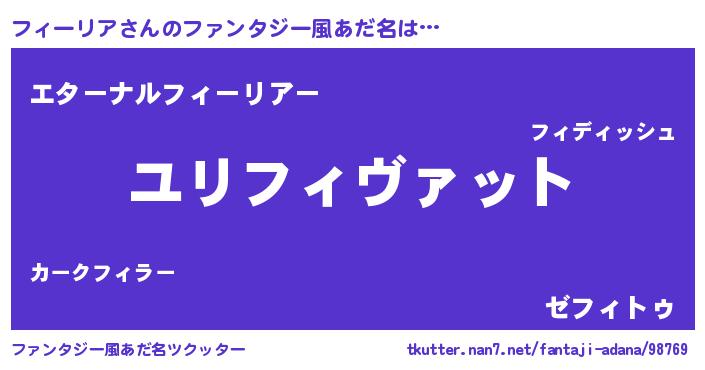 | 意味不明あだ名 | 『ニラ科フィーリア属』『自称フィーリア』 |