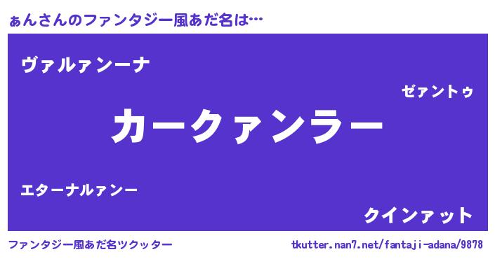 | 自動車の名前っぽいあだ名 | 『フェァーン』『ァウディ』『ァンR』 |