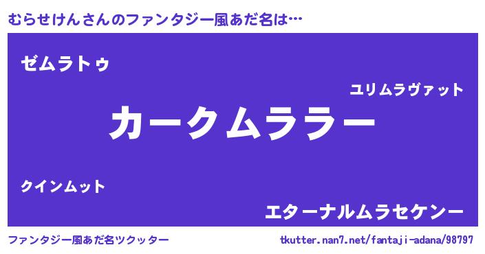 | 意味不明あだ名 | 『自称むらせけん』『ペロリンむらせけん』 |