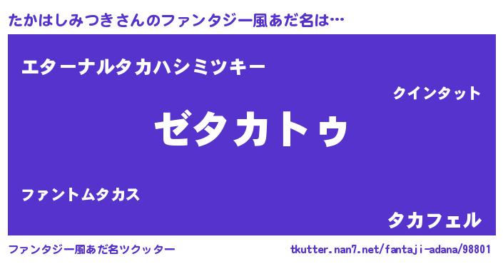 | 意味不明あだ名 | 『自称たかはしみつき』 |