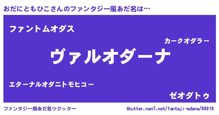 | 男性向けラノベタイトル風あだ名 | 『この素晴らしい世界におだにともひこを!』 |