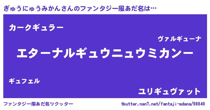 | 伝説のあだ名 | 『秘められし忍者ぎゅうにゅうみかん』 |