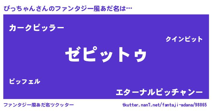 | 男性向けラノベタイトル風あだ名 | 『魔法科高校のぴっちゃん』 |