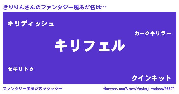| 男性向けラノベタイトル風あだ名 | 『キリリンアートオンライン』 |