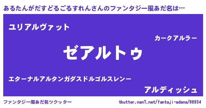 | 伝説のあだ名 | 『古文書に記された勇者あるたんがだすどるごるすれん』 |