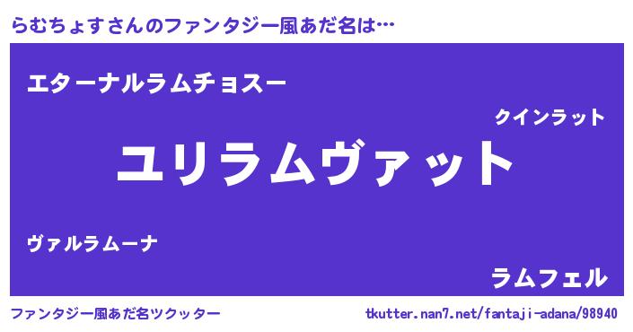| 男性向けラノベタイトル風あだ名 | 『転生したららむちょすだった件』 |