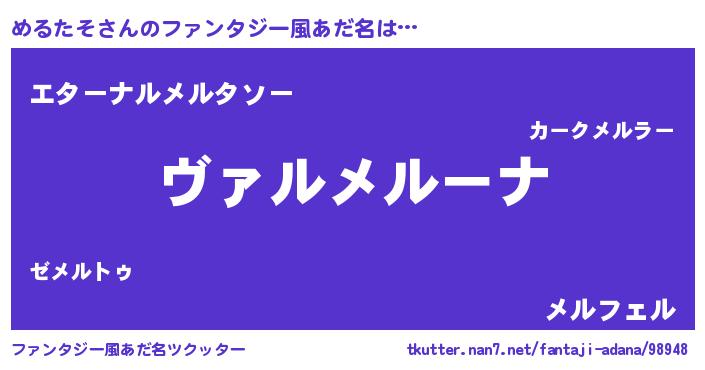 | 意味不明あだ名 | 『住所不定無職めるたそ(50歳)』 |