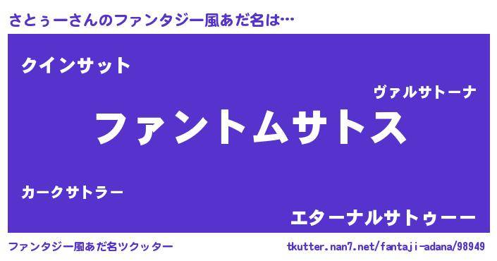 | 男性向けラノベタイトル風あだ名 | 『ダンジョンにさとぅーを求めるのは間違っているだろうか』 |