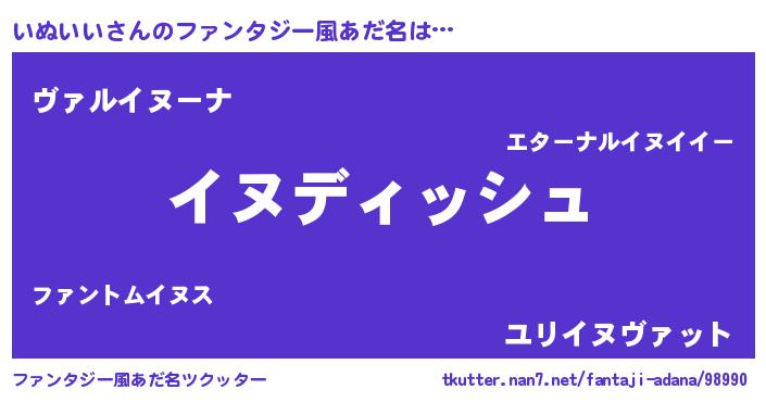 | ポケモン風あだ名 | 『ゼニイヌ』『イヌゴンZ』『イーヌイ』 |