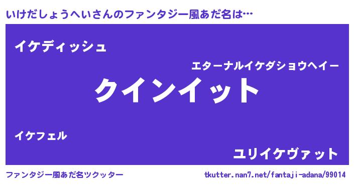 | 胡散臭い通販商品みたいなあだ名 | 『お金では代えられない隕石のかけら…その名も「いけだしょうへい」』 |