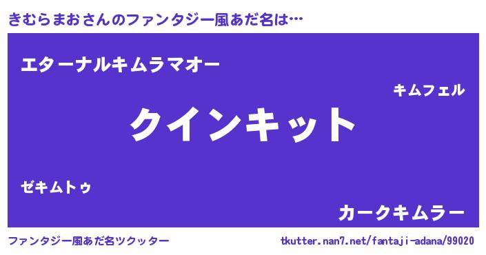 | 男性向けラノベタイトル風あだ名 | 『ノーゲーム・ノーキムラマオ』 |