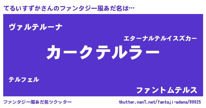 | 意味不明あだ名 | 『住所不定無職てるいすずか(12歳)』 |