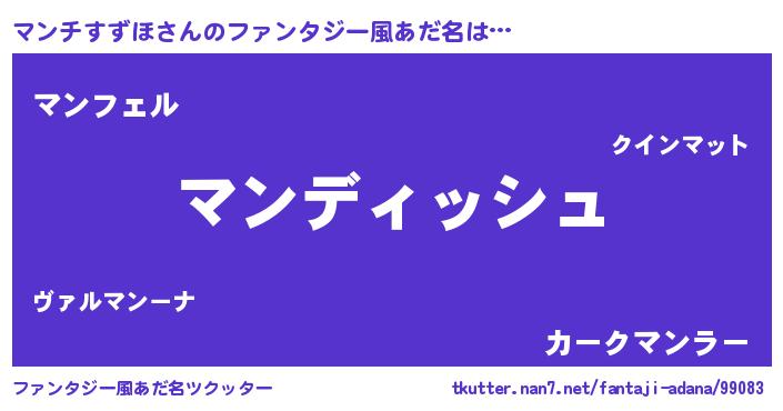 | 男性向けラノベタイトル風あだ名 | 『マンチすずほという概念が存在しない退屈な世界 』 |