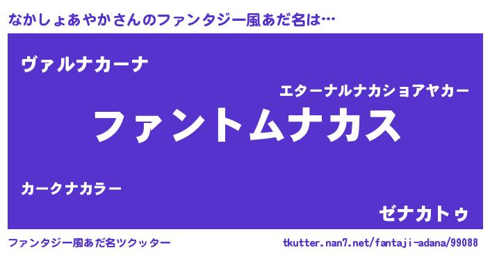 | ポケモン風あだ名 | 『ヒナカショアヤカ』『ナーカイ』 |