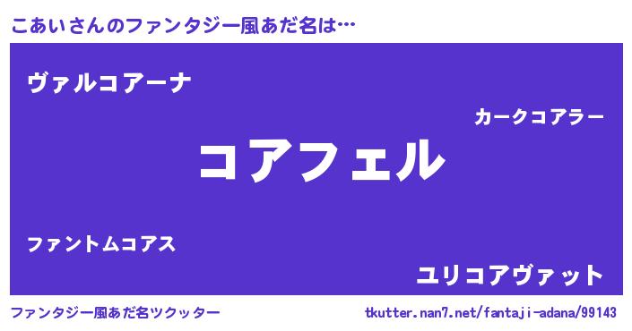 | 女子向けラノベタイトル風あだ名 | 『(仮)こあいのやんごとなき事情』 |