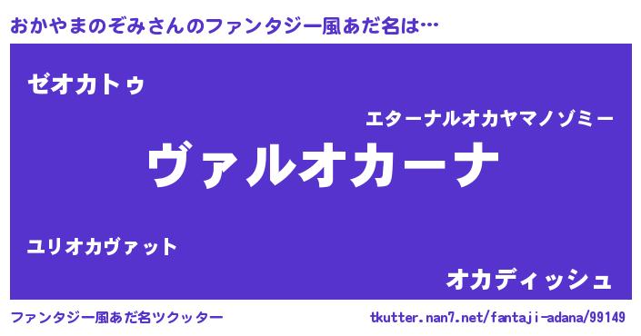 | 伝説のあだ名 | 『古文書に記された暗殺者おかやまのぞみ』 |