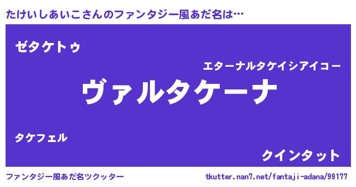 | 意味不明あだ名 | 『住所不定無職たけいしあいこ(4歳)』 |