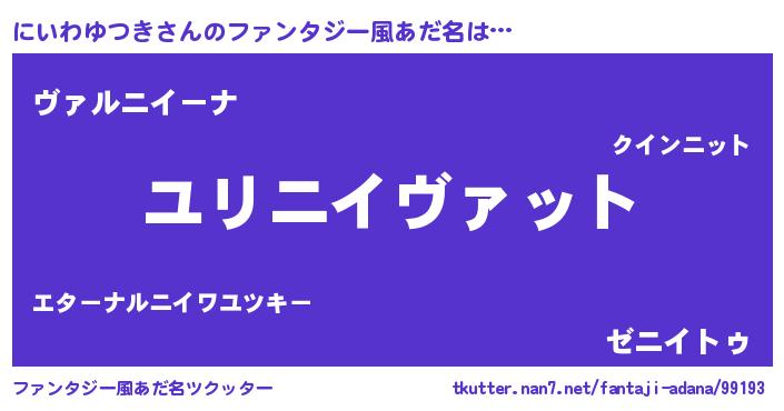 | 男性向けラノベタイトル風あだ名 | 『ニイワユツキスレイヤー』 |