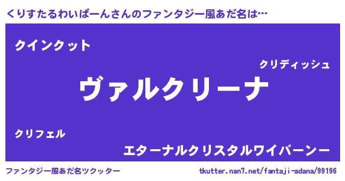 | 意味不明あだ名 | 『住所不定無職くりすたるわいばーん(43歳)』 |