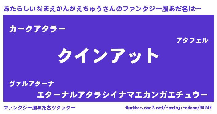 | 男性向けラノベタイトル風あだ名 | 『おまえをオタクにしてやるから、俺をあたらしいなまえかんがえちゅうにしてくれ! 』 |