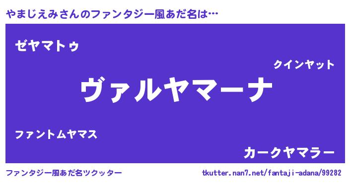 | 男性向けラノベタイトル風あだ名 | 『魔弾の王とやまじえみ』 |