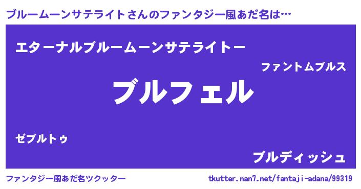 | 男性向けラノベタイトル風あだ名 | 『ブルームーンサテライトの憂鬱』 |