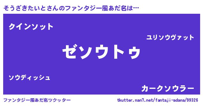 | 伝説のあだ名 | 『救世主となる占い師そうざきたいと』 |