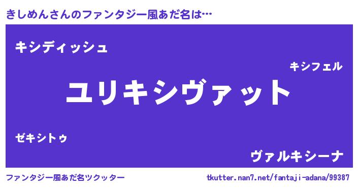 | 男性向けラノベタイトル風あだ名 | 『キシメンスレイヤー』 |