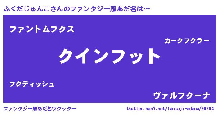 | ポケモン風あだ名 | 『フックウザ』『ヒフクダジュンコ』 |