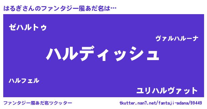 | 男性向けラノベタイトル風あだ名 | 『はるぎに滅ぼされるだけの簡単なお仕事です』 |