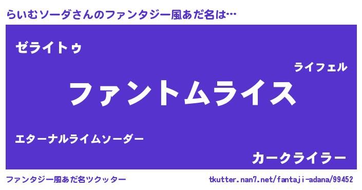 | 意味不明あだ名 | 『とにかく怪しいらいむソーダ』 |