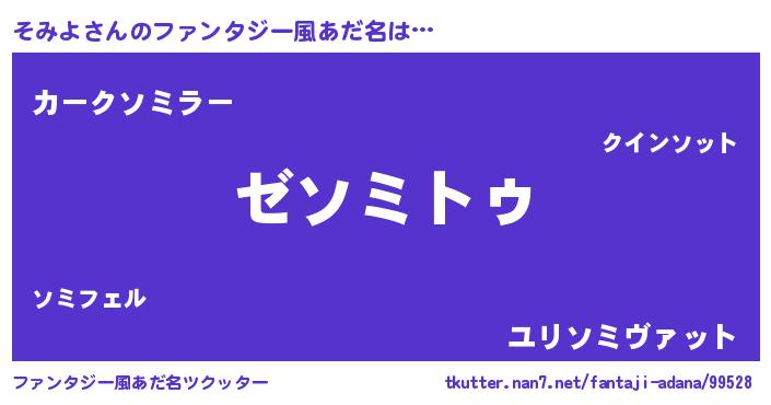 | 男性向けラノベタイトル風あだ名 | 『Re:そみよから始める異世界生活』 |
