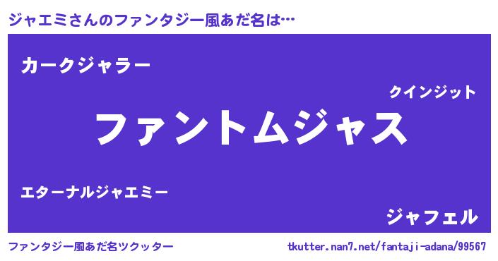 | 女子向けラノベタイトル風あだ名 | 『ジャエミ様がみてる』 |
