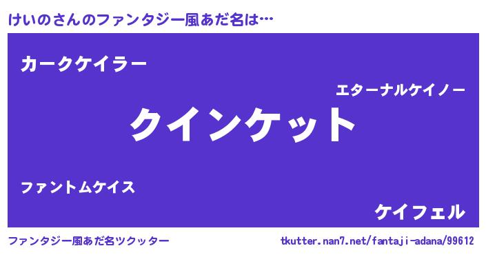 | 男性向けラノベタイトル風あだ名 | 『おまえをオタクにしてやるから、俺をけいのにしてくれ! 』 |