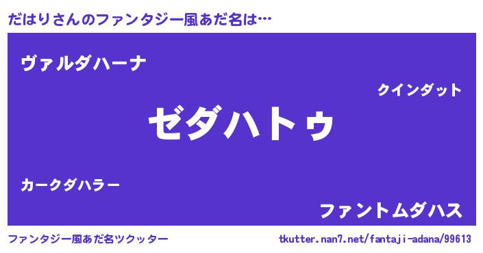 | ヒーロー風カッコイイあだ名 | 『最強戦士ダハリ』『仮面ダハダー』 |