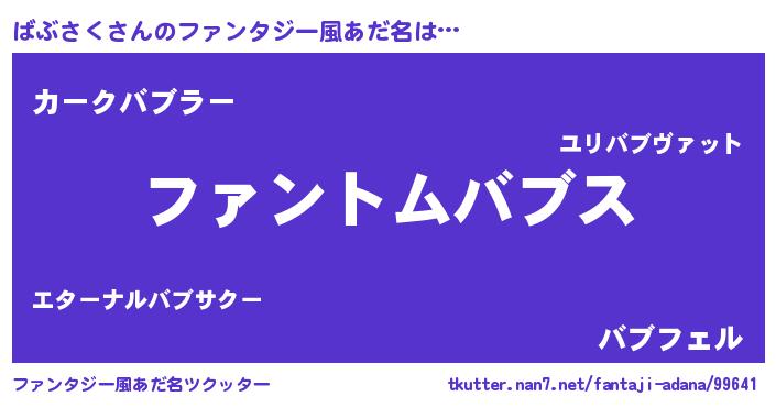 | 男性向けラノベタイトル風あだ名 | 『ばぶさくに滅ぼされるだけの簡単なお仕事です』 |