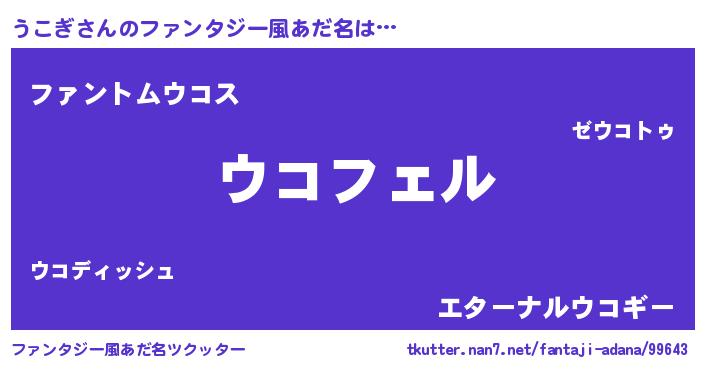 | ヒーロー風カッコイイあだ名 | 『スーパーウコギ』『黄金騎士ウコ』 |