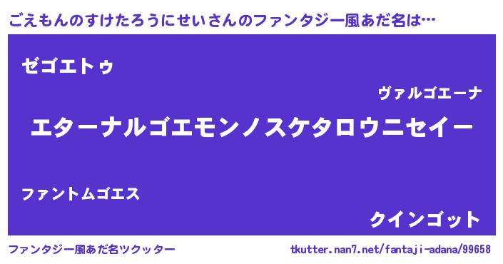 | 意味不明あだ名 | 『ごえもんのすけたろうにせいフォーエバー』 |