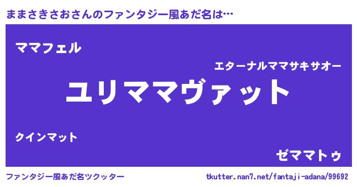 | 男性向けラノベタイトル風あだ名 | 『ママサキサオスレイヤー』 |