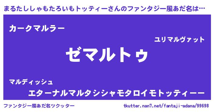 | ヒーロー風カッコイイあだ名 | 『ウルトラ戦士マルタシシャモタロイモトッティー』 |