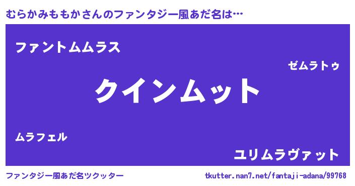 | 欧米人風あだ名 | 『ダニエルむらかみももか』 |
