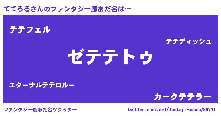 | 男性向けラノベタイトル風あだ名 | 『Re:ててろるから始める異世界生活』 |
