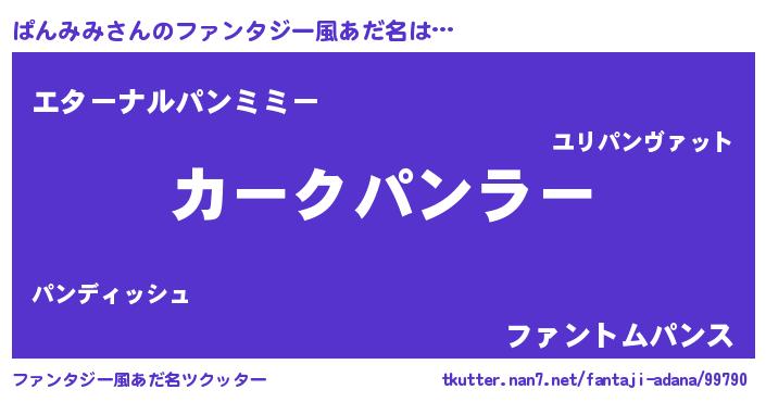 | 男性向けラノベタイトル風あだ名 | 『ぱんみみに滅ぼされるだけの簡単なお仕事です』 |