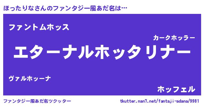 | ポケモン風あだ名 | 『ホッタダネ』『ヒホッタリナ』 |