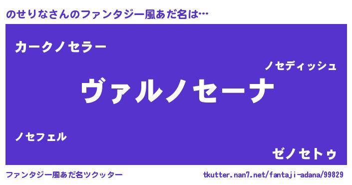 | 男性向けラノベタイトル風あだ名 | 『この素晴らしい世界にのせりなを!』 |