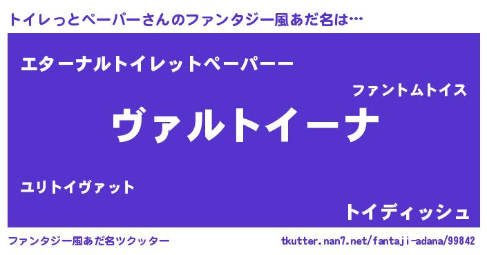 | 意味不明あだ名 | 『住所不定無職トイレっとペーパー(81歳)』 |
