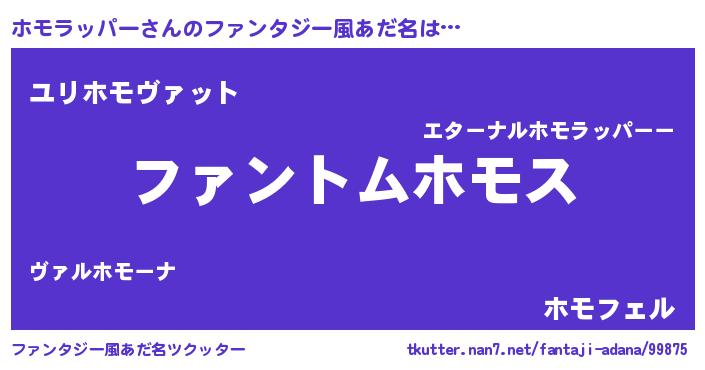 | 胡散臭い通販商品みたいなあだ名 | 『信頼と実績のペンダント…その名も「ホモラッパー」』 |